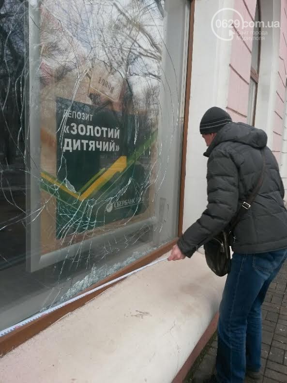 У Маріуполі близько 3 години ночі з суботи на неділю невідомі розбили скло в Сбербанку Росії.