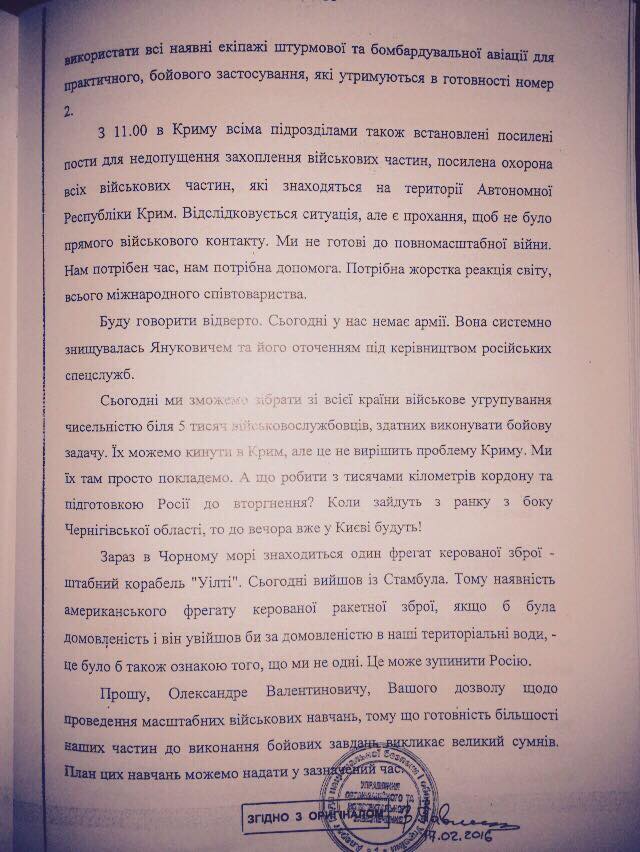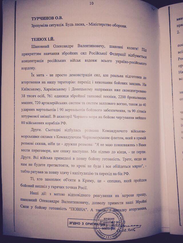 Про це доповідав на засіданні РНБО 28 лютого 2014 року тодішній міністр оборони Ігор Тенюх.