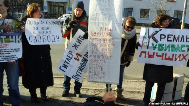 "Ми протестуємо проти політичних переслідувань у Росії, шануємо пам’ять Бориса Нємцова, сумуємо разом з його рідними і близькими, висловлюємо підтримку російським політв’язням і солідарність з тими, хто зазнає переслідувань, але продовжує боротися", – зазначили активісти у спільноті "Євромайдан SOS" у Facebook.