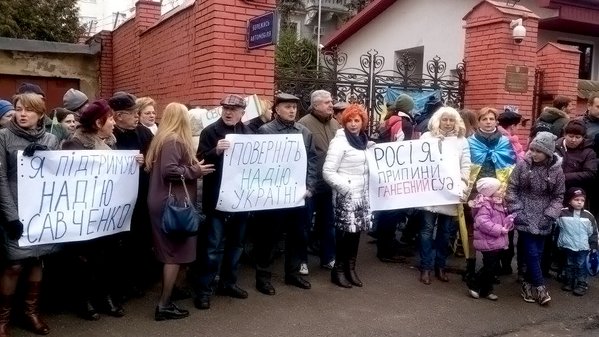 Під представництвом ЄС в Україні також відбулася акція солідарності з Савченко. Учасники заходу вимагали від Європи введення персональних санкцій щодо представників РФ та тих, хто вів судовий процес проти Савченко.