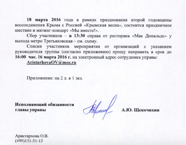 Як повідомив депутат Ломоносов району Москви Дмитро Мартиненко, від його району на марш підуть 214 бюджетних працівників.
