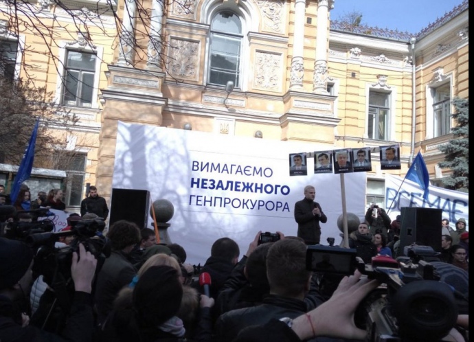 Під Адміністрацією президента проходить акція за відставку Генпрокурора Віктора Шокіна та проведення відкритого конкурсу на цю посаду.