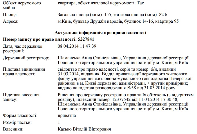 На момент приватизації квартири Віталій Касько не працював у прокуратурі. Заступником генпрокурора його призначили лише у травні 2014 року.