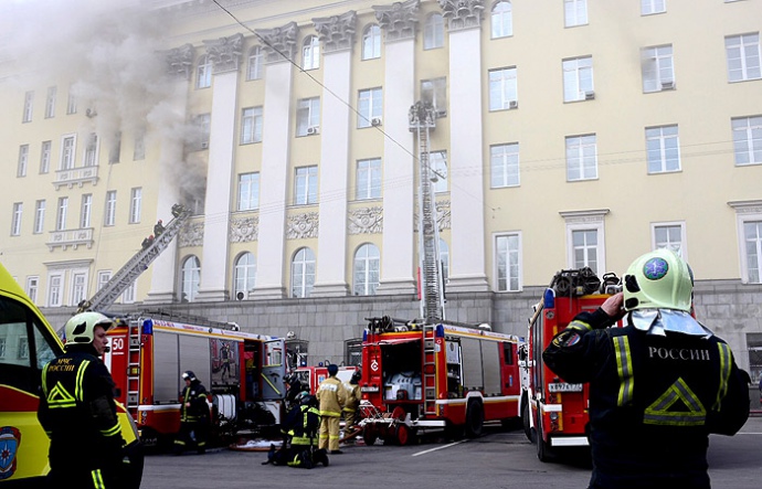 У центрі Москви у будівлі Міноборони РФ сталася пожежа, з будинку евакуювали 47 осіб.