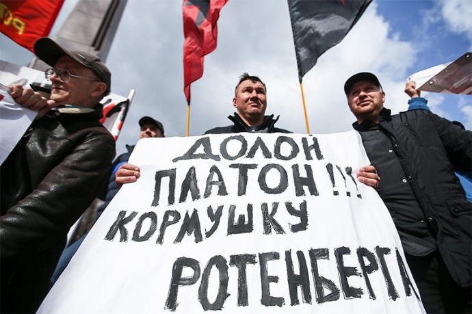У центрі Москви на площі Яузькі Ворота пройшов мітинг далекобійників проти системи стягнення плати з великих вантажівок за проїзд по федеральних трасах - системи "Платон".
