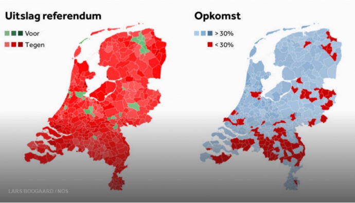 Разом з тим, як відзначає видання, думки мешканців великих міст розділилися - в Амстердамі та Утрехті здебільшого голосували за асоціацію (52,5% та 57,4%), в той час як в Ротердамі та Гаазі - проти (64% та 58,9%).