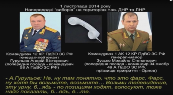Він показав аудіо-перехоплення, що відбулося на передодні проведення цих голосувань 1 листопада 2014 року. Розмова відбувалася між двома військовими РФ.