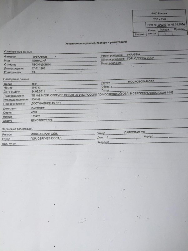 Пізніше правоохоронці опитали Геннадія Труханова і він сказав, що не має російського паспорта.
