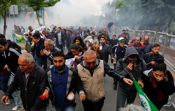 У Стамбулі поліція застосувала сльозогінний газ і водомети для розгону близько 150 демонстрантів у День праці 1 травня, коли ті скандували "Геть фашизм" і "Хай живе 1 Травня", намагаючись пройти в бік головної площі міста Таксім.
