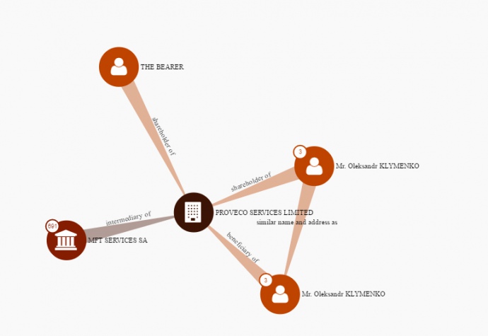 Також у документах вказаний Олександр Клименко, який є бенефіціаром компанії PROVECO SERVICES LIMITED зареєстрованої ще в 1995 році на Британських Віргінських островах. Клименко - колишній депутат від Нашої України-Народної Самооборони у ВР четвертого скликання з 2007 по 2012 рік. З жовтня 2013 - голова УНП.