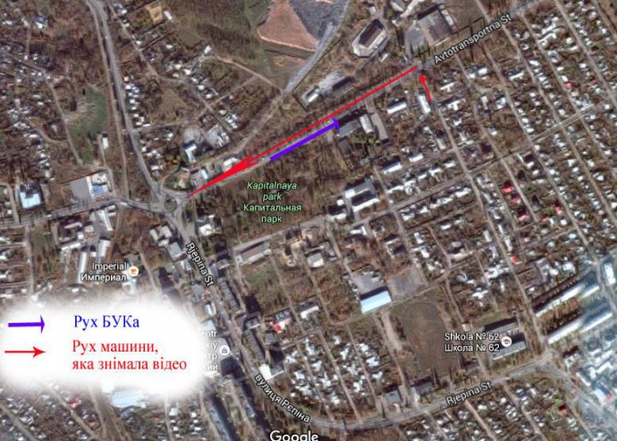 Схоже, що в об'єктив "Бук" потрапив на перетині вулиць Рєпіна й Автотранспортної.