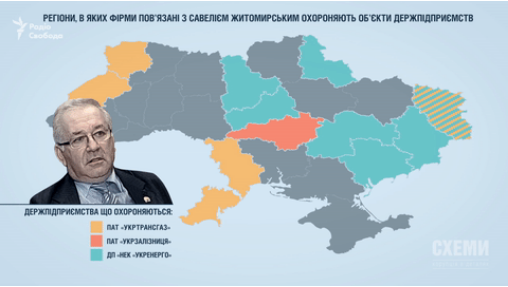 Загалом фірми, пов’язані з Житомирським, активно діють мало не в усіх регіонах України. У Луганській, Одеській, Волинській та Львівській областях вони охороняють об’єкти "Укртрансгазу", в Кіровоградський області – "Укрзалізниці", а в Київській, Дніпропетровській, Запорізькій, Черкаській, Сумській, Донецькій та Луганській областях – об’єкти "Укренерго".