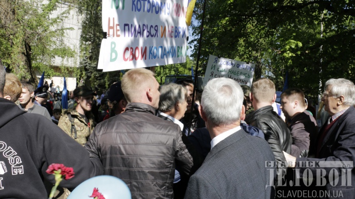 Вона йшла на чолі колони до міського парку культури, де було призначено покладання квітів до Вічного вогню, повідомляють "Новости Донбасса".