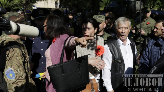 Народного депутата від партії "Опозиційний блок" Наталію Королівську в Слов'янську облили зеленкою під час урочистої ходи.
