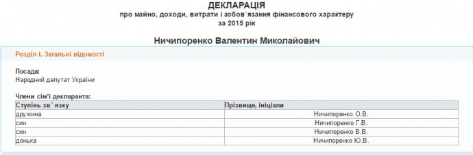 В його декларації про доходи за 2015 рік вказані двоє синів і донька, Олексій відсутній, оскільки вже дорослий і не живе з батьками.