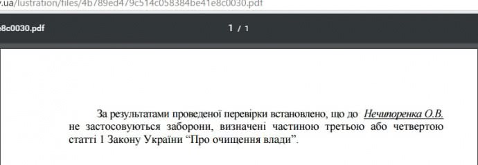 Згідно з даними ГПУ, Ничипоренко проходив люстраційну перевірку. У документах, які він заповнював, він вказаний як Ничипоренко, однак у висновку комісії з перевірки, який є в пакеті документів, він значиться, як Нечипоренко.