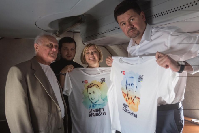 "Вилітаємо за нашими. І за дві години вже Москва. Вже в літаку! Всі подробиці цього чудового дня за кілька годин. Юрій Солошенко і Геннадій Афанасьєв вилітають до Києва. Доручення президента виконано. Ще двоє наших українців звільнено. Ми з Цеголком і усіма причетними щасливі!" – зазначила Геращенко.