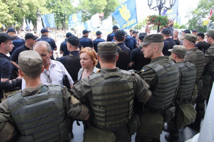 При цьому будівля міськради по периметру оточили співробітники поліції і бійці Національної гвардії України.