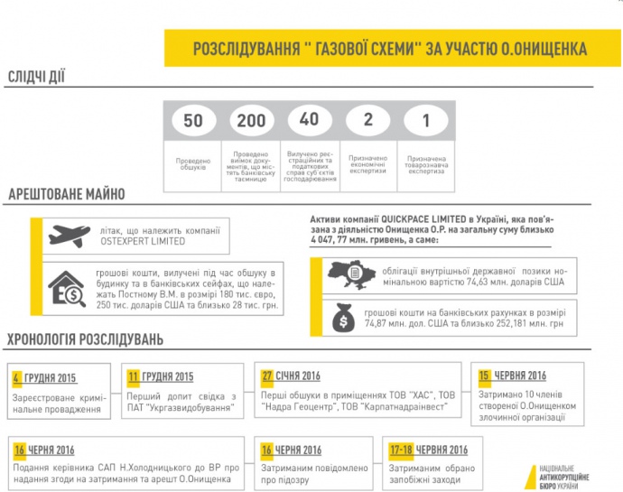В НАБУ заявляють про арешт у "газовій справі" активів, майна компанії Quickpage Limited, пов'язаної з депутатом Олександром Онищенком на загальну суму близько 4 мільярдів гривень.