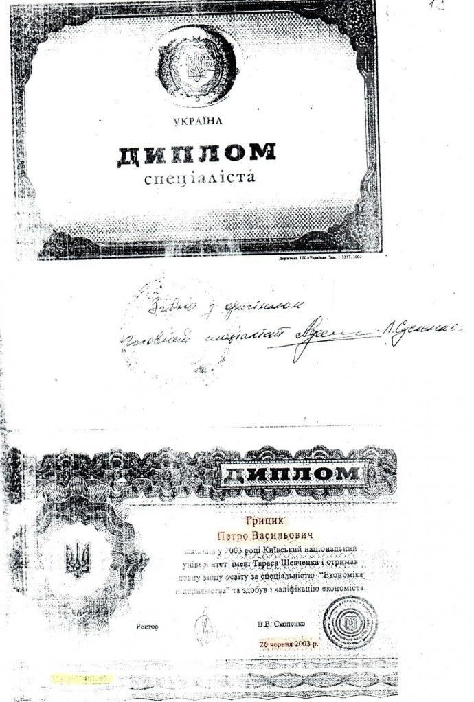 Про це повідомляє Mukachevo.net, у розпорядженні якого копії диплому Грицика, а також відповідь ректора вишу, що цей диплом є підробкою.