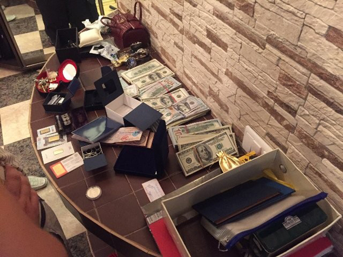 Під час обшуків за місцем проживання чиновника правоохоронці вилучили 153 тисячі доларів США, шість коштовних годинників та ювелірні вироби.