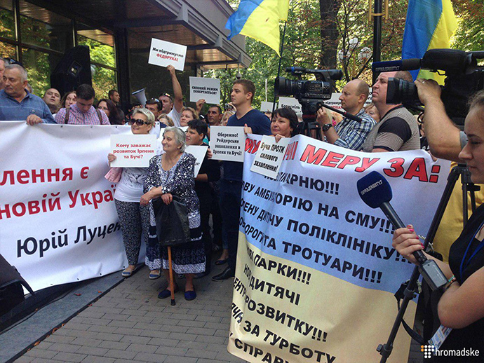 На захист мерів Ірпеня й Бучі під ГПУ нагнали близько 200 людей