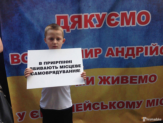 "У Бучі нема такого лісу, щоб його рубати", — заявляє один з учасників протесту.