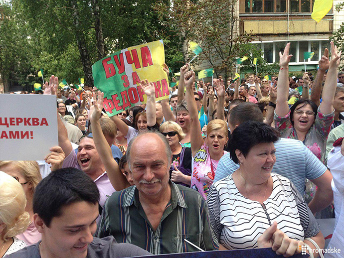 Як повідомлялося, у п'ятницю місцева активістка та екс-депутат Коцюбинської селищної ради Ірина Федорів написала в блозі на "Українській правді", що після скандальних обшуків у Бучі команда мерів-кумів з Ірпеня та Бучі заходилася організовувати пікетування ГПУ.