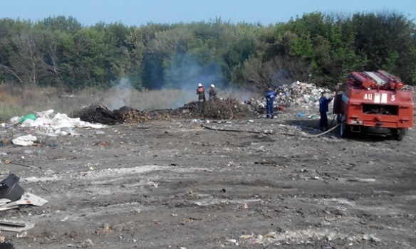 Проте, як повідомляють рятувальники, в зв’язку з загрозою зсуву сміття в кар’єр глибиною 7 м роботи по гасінню були призупинені.
