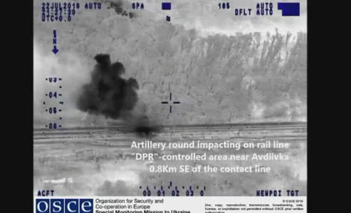 Спостережна місія ОБСЄ оприлюднила відео з лінії розмежування на Донбасі із зафіксованими з безпілотника обстрілами в районах Донецька та Авдіївки.