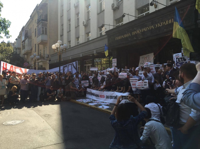Під будівлею Генеральної прокуратури у Києві проходить акція проти викрадення і катування співробітників Національного антикорупційного бюро.