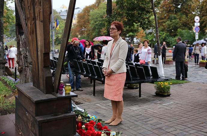 Повідомляється також, що після параду Йованович вшанувала пам'ять героїв Небесної сотні.