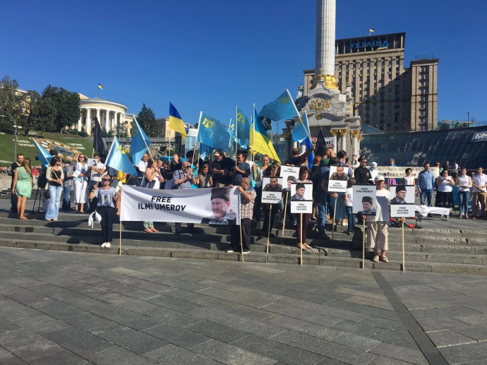 На Майдані Незалежності в Києві проходить акція з вимогою звільнити заступника голови Меджлісу кримськотатарського народу Ільмі Умерова, який перебуває у російському полоні в Криму.