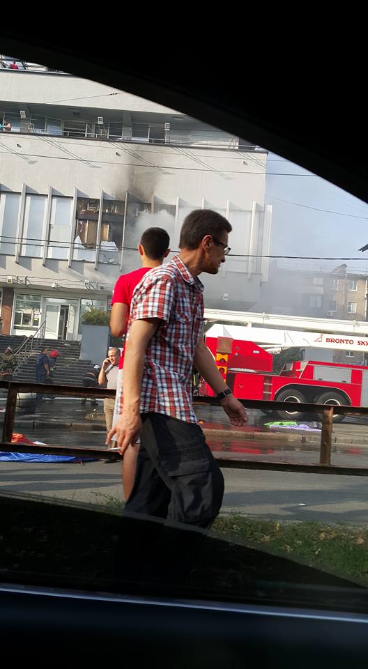 У самій будівлі з невідомої причини виникло задимлення. На місце інциденту прибули пожежні машини, поліція та "швидка". З будівлі евакуювали людей.