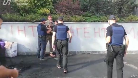 З'явилося відео пожежі будівлі "Інтера" та затримання учасників пікету