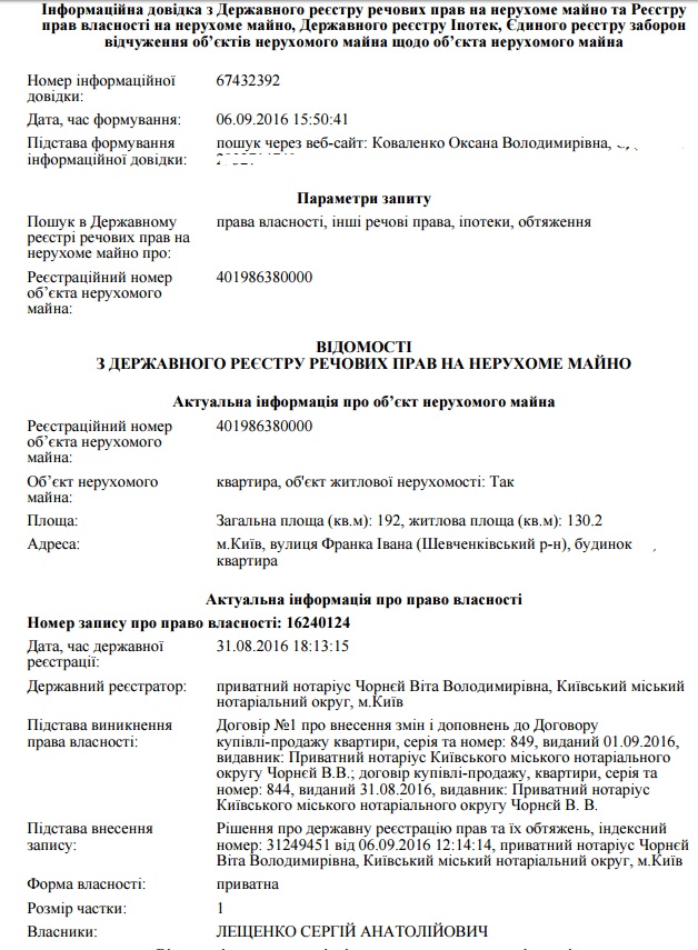 Народний депутат Сергій Лещенко придбав квартиру площею 192 квадратних метрів у новобудові в центрі Києва.