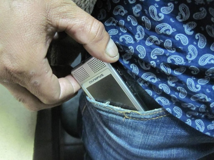 У ході первинного опитування іноземець заявив, що пристрої для відео- та аудіозапису він отримав від співробітників російської міграційної служби, коли був затриманий за перевищення терміну реєстрації на території РФ.