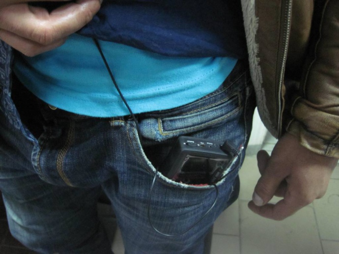"Вже під час спільного з представниками СБУ та фіскальної служби огляду на сорочці чоловіка прикордонники на місці ґудзика помітили приховану камеру для відеозйомки. Від неї йшов провід до пристрою накопичення інформації, що знаходився у кишені, а в іншій кишені також знайшли пристрій для аудіо запису" – зазначає Держприкордонслужба.