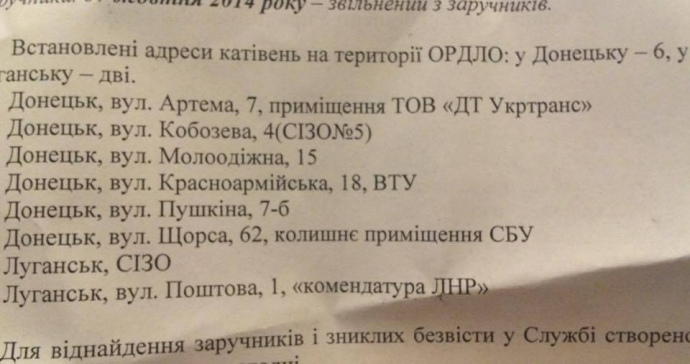 Служба безпеки знайшла 8 адрес катівень на Донбасі на території так званих самопроголошених "ДНР" та "ЛНР".