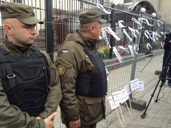 Біля посольства РФ розвісили стрічки з іменами зниклих у Криму людей