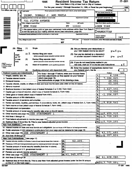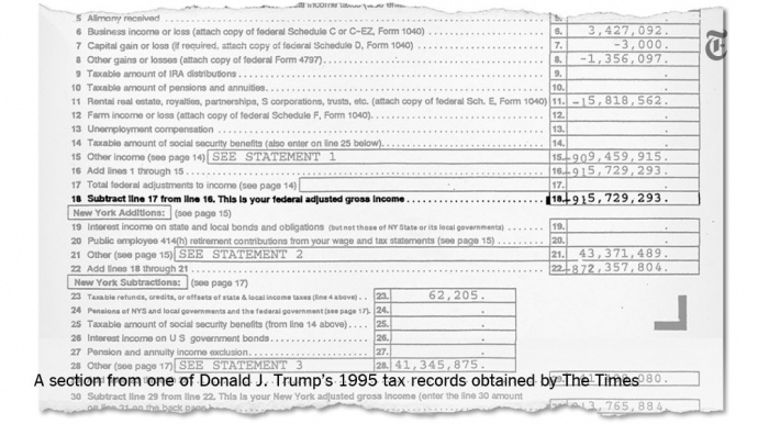 Кандидат в президенти США від Республіканської партії Дональд Трамп в 1995 році оголосив в податкових деклараціях про збитки в розмірі $ 916 млн, що дозволило йому 18 років уникати сплати деяких федеральних податків.