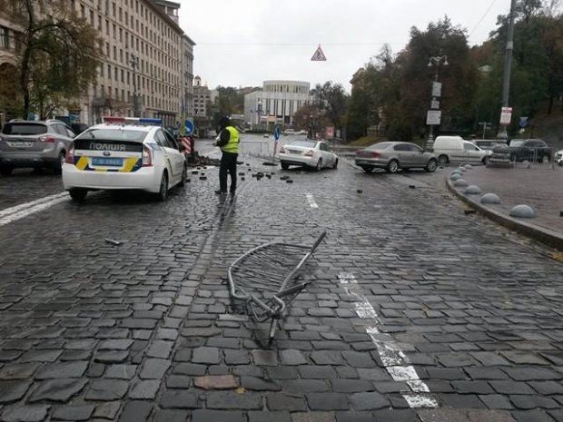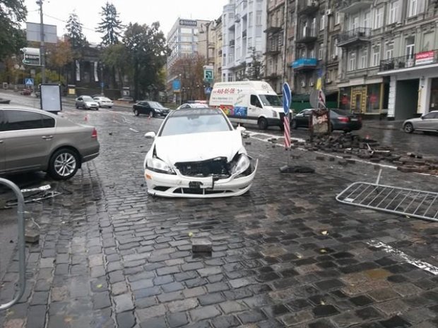 У центрі Києва "Мерседес" розтрощив пам'ятник герою Небесної сотні