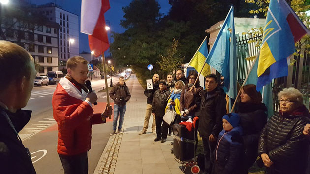 Українські та польські активісти у Варшаві долучилися до всесвітньої акції “Stop Putin’s War in Ukraine”. Присутні з українськими, польськими і кримськотатарськими прапорами і плакатами і про агресивну сутність режиму Путіна скандували гасло "Російську зброю - до Росії".