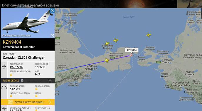 Згідно з даними сервісу FlightRadar, борт KZN9404, який належить до урядового парку Татарстану, вирушив 9 жовтня із аеропорту Сімферополя о 15:08.