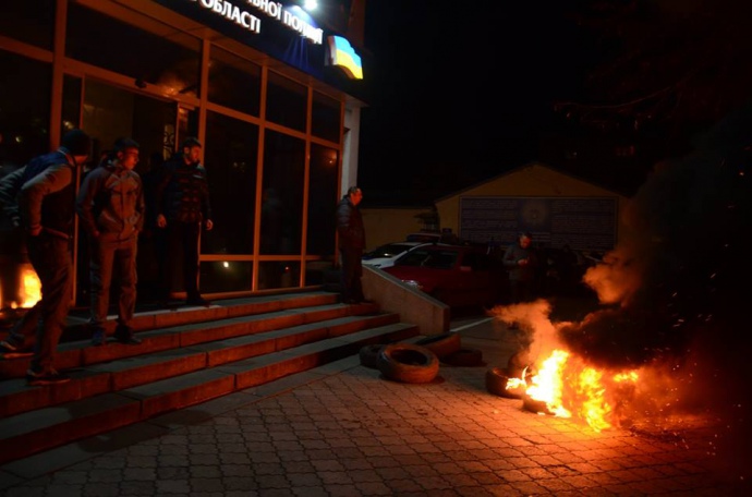 Зокрема, як повідомляє видання ПроВсе, ввечері під будівлею місцевого управління поліції горіли шини.