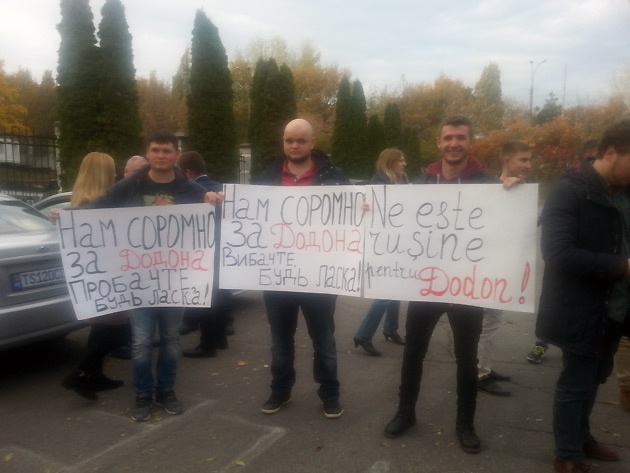 Представники молдавського молодіжного руху провели перед Посольством України в Кишиневі флешмоб "Нам соромно за Додона. Вибачте, будь ласка!".