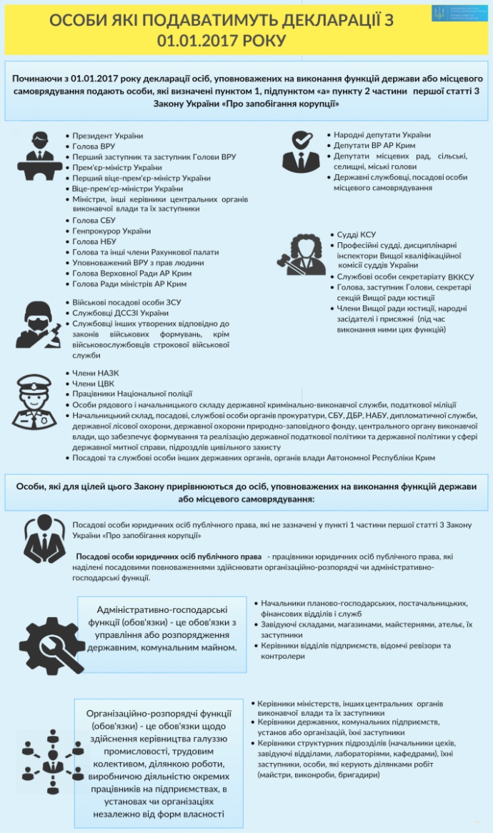 Починаючи з 1 січня 2017 року розшириться коло суб’єктів е-декларування.