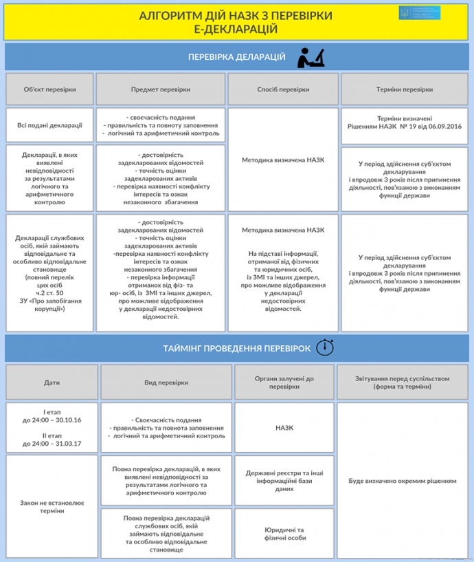 Національне агентство з питань запобігання корупції опублікувало алгоритм, за яким відбуватиметься перевірка електронних декларацій чиновників.