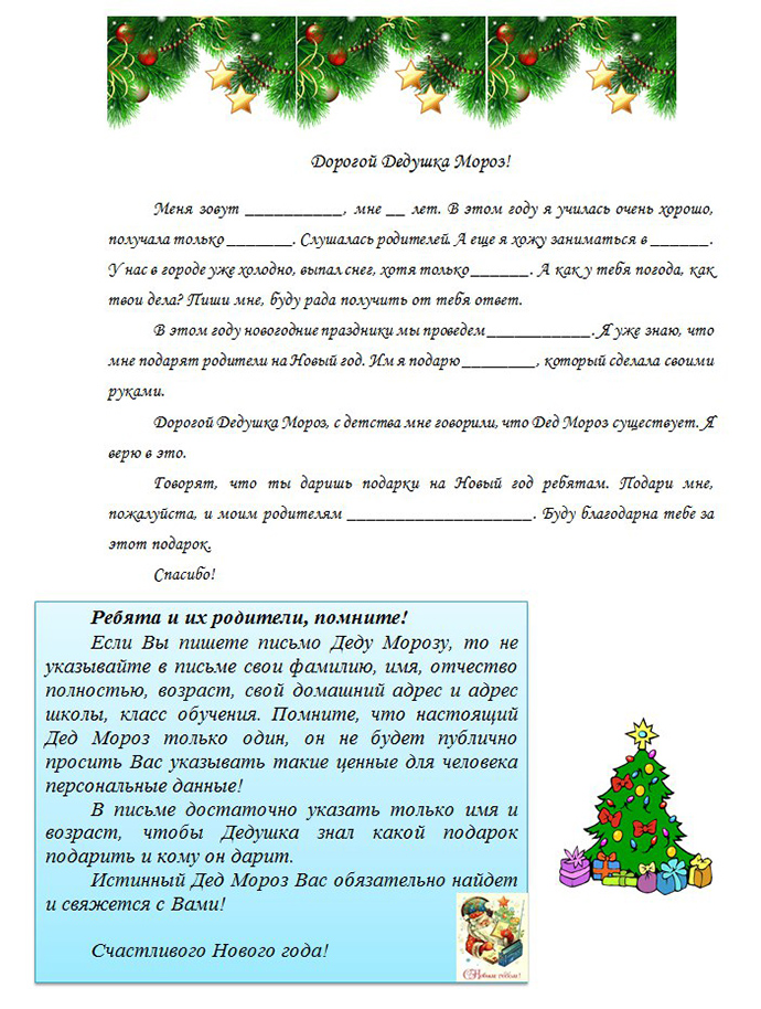Роскомнагляд пропонує дітям писати листи Дідові Морозу за зразком
