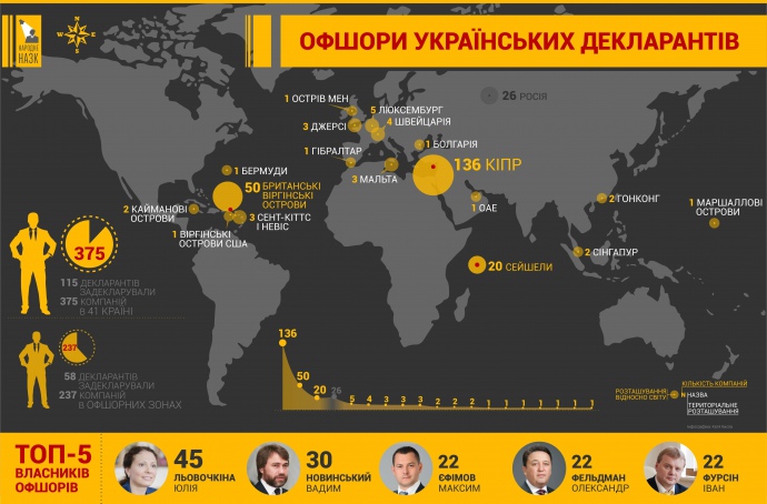 Загальна кількість таких компаній – 375 і розташовані вони у 41 країні світу. З них 237 компаній 58 декларантів - в офшорних зонах.